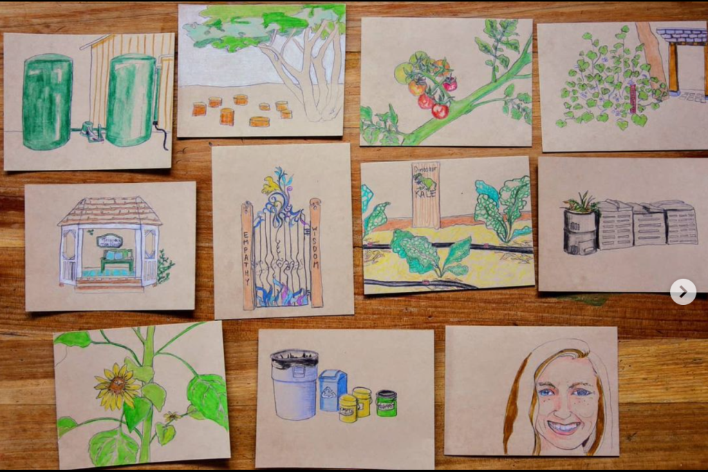 When I attended the (amazing!) Edible Schoolyard Academy at Martin Luther King Middle School in Berkeley, I learned that their program highly valued hand illustration.  For example, their staff embellishes all of their recipes with simple drawings.  We even had a lesson on how to do this ourselves!  Their garden is full of hand lettering and whimsical drawings.  This year we are so lucky that our FoodCorps service member comes to us with these skills in spades.