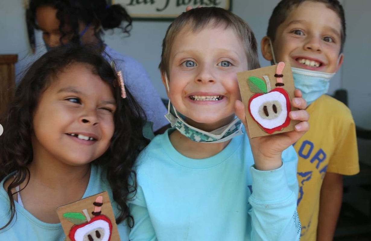 And one more—students sewed together layers of felt to illustrate the parts of the apple. Again, a completely original lesson thought up by our garden teacher extraordinaire.