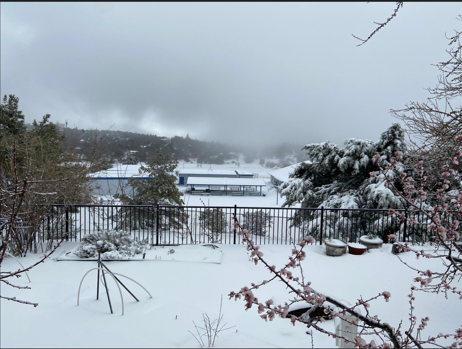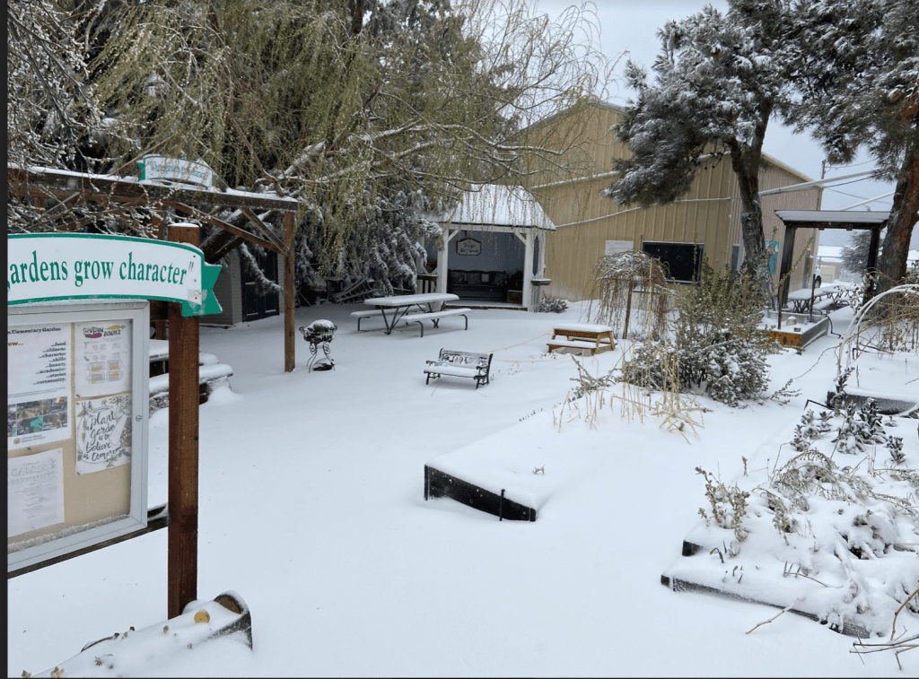San Diego schools are blessed with a year-round growing season. San Diego County schools in the mountains at 4200 feet…not quite as much! Consider the view in our garden last week!