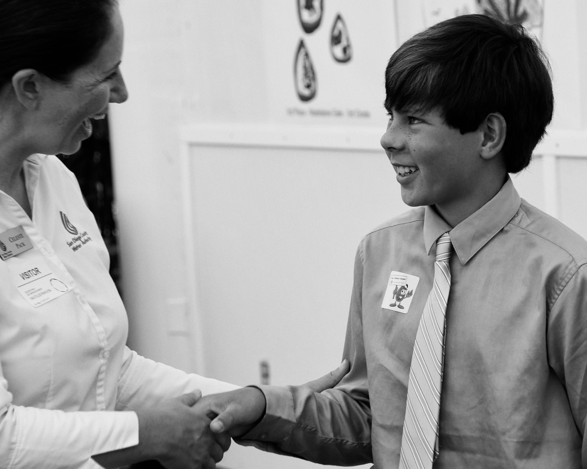 For the “Be Smart Water Conservation Essay/Art Contest” sponsored by the San Diego County Water Authority, Ethan won first place in the sixth grade category. Here he is talking with the Education Outreach Coordinator, Celeste Pack.