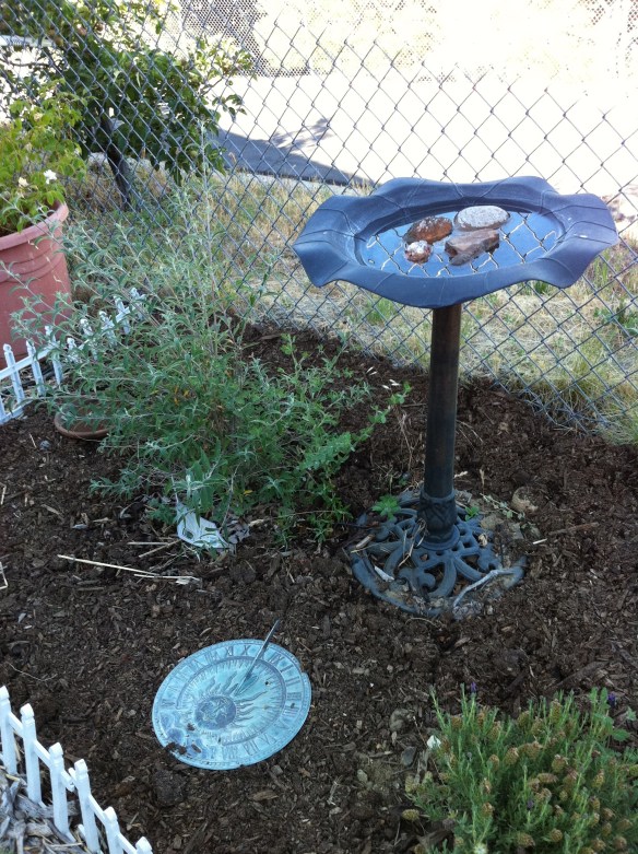 Our school garden has met these requirements (both in a butterfly/hummingbird habitat bed and also throughout the larger garden), and we recently did the paperwork and received our sign.  After the photos below, read more about the habitat elements and go here for more information.