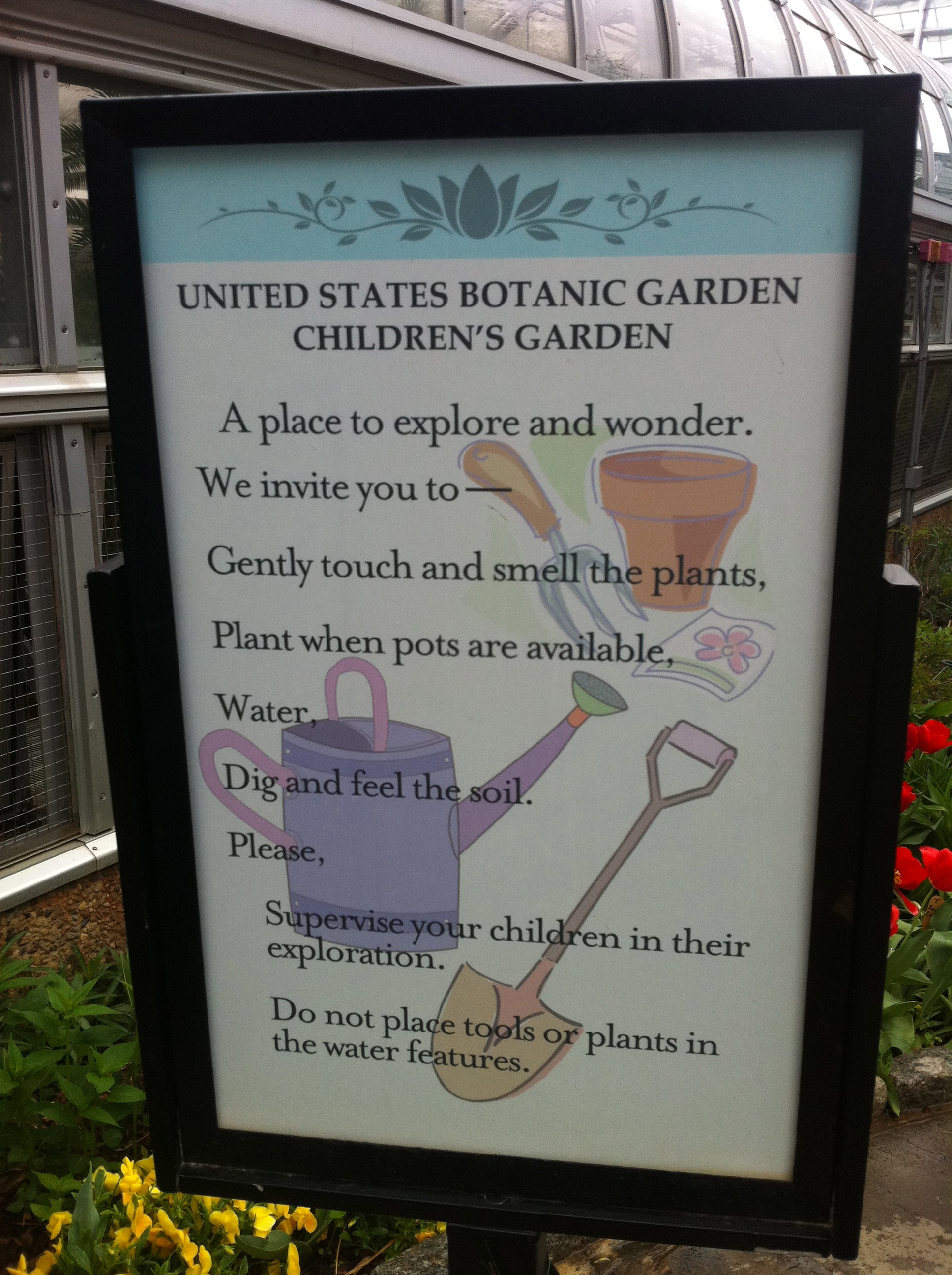 As has become my custom, I took pictures of some sweet ideas for children’s gardens at the United States Botanic Gardens.