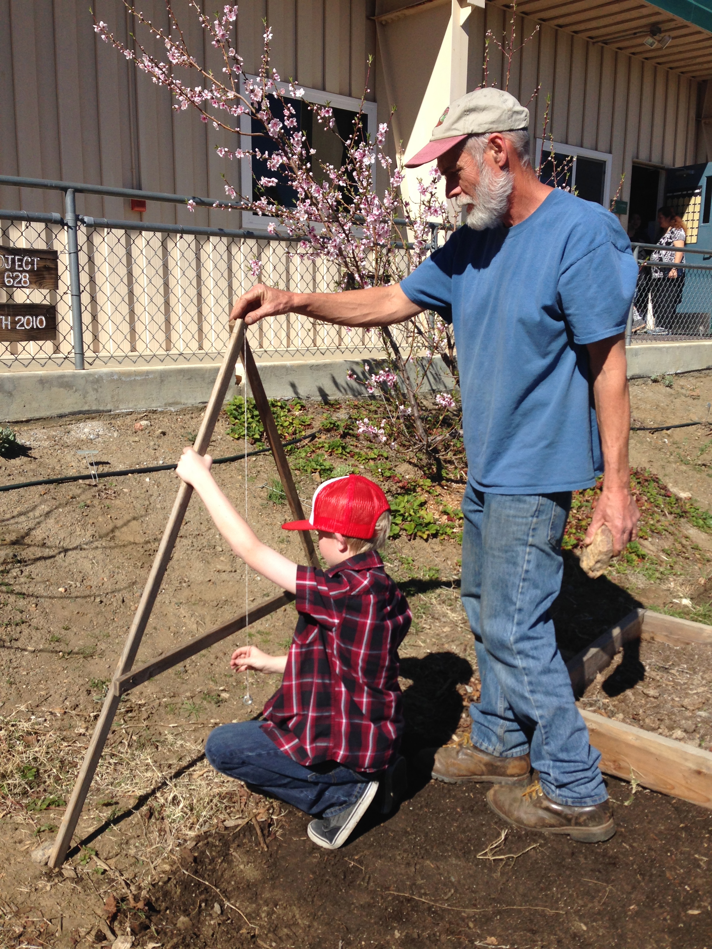 May has been incredibly rainy, and so we’ve had many opportunities to see it in action.  You will see here that is has filled with water.  The idea is that the water will then seep in slowly to the area where the roots are, instead of draining away and out of the garden. Students were very excited to see all of the rain they “caught!”  Thanks Bob for your generous donation of time and expertise to work with our older elementary kids to teach effective and critical water conservation.
