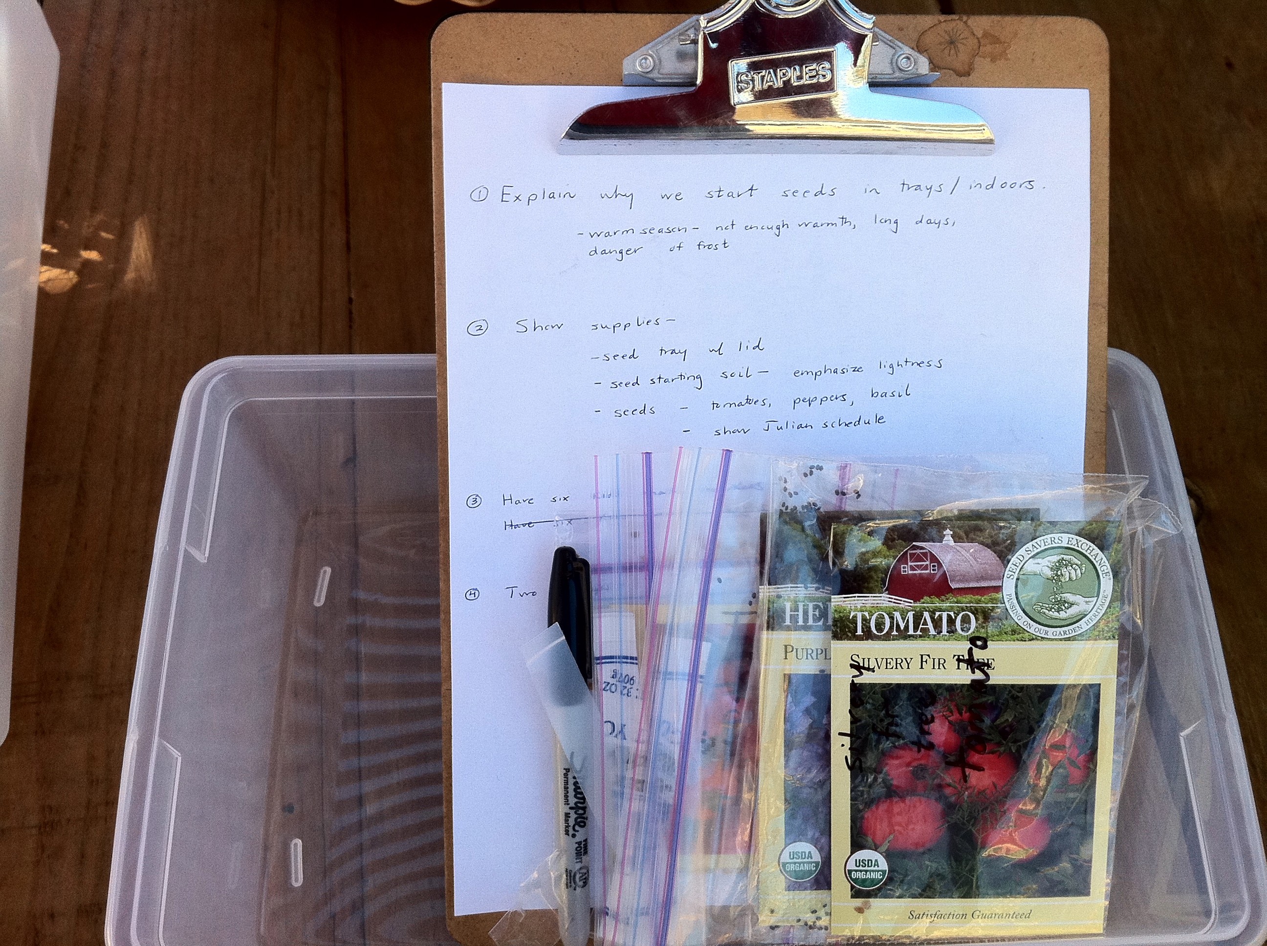 The secret to my success, both professionally and personally? The clipboard. I know, I know. I get asked all the time if I’m taking the census or training to be a camp counselor. But I love clipping lots of notes together, the moveable writing surface, etc. In the garden, they are indispensable. I clip together notes for volunteers, pass them out with guided activities for kids, you name it.
