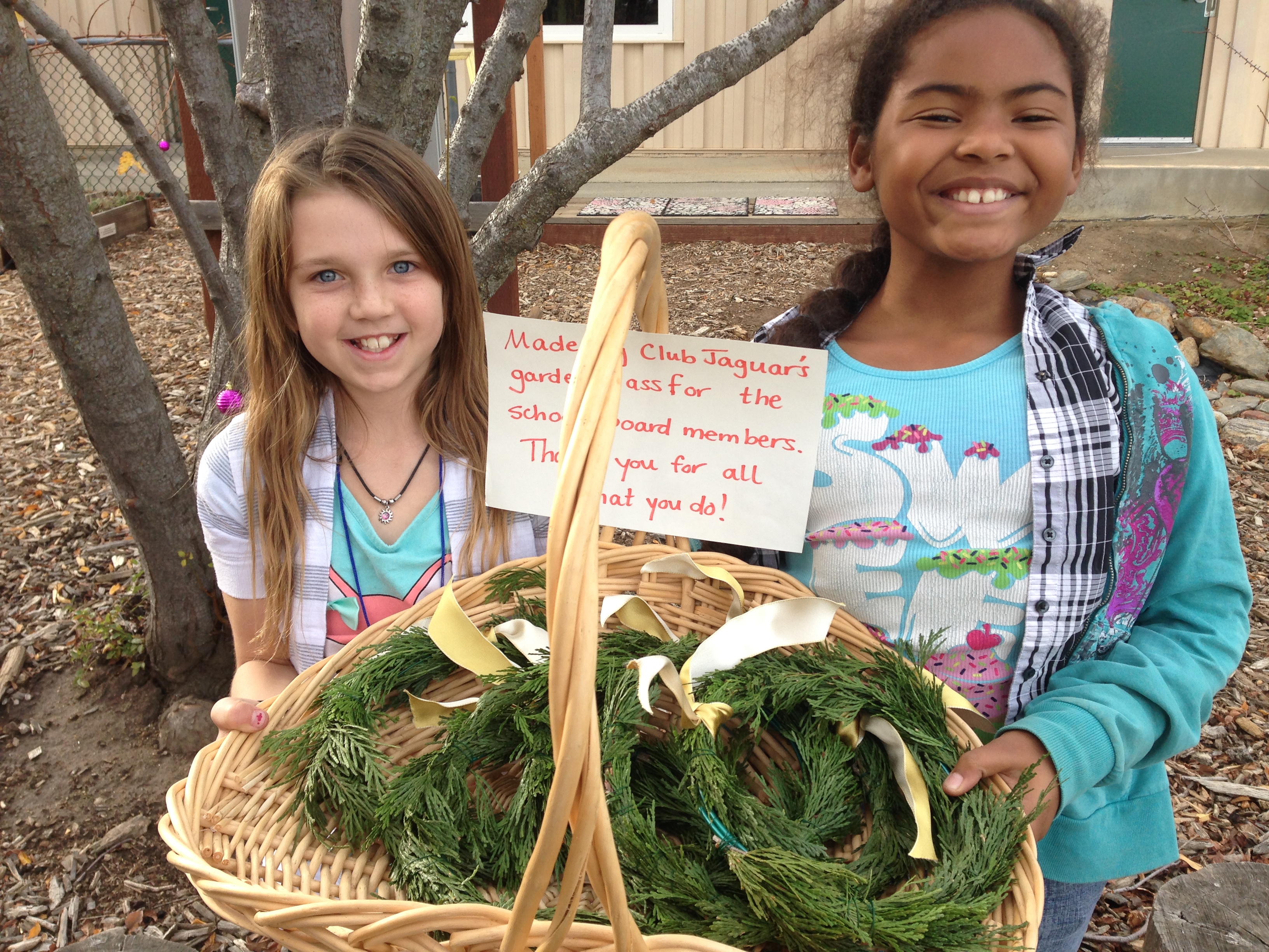 Wreaths! I have wire and forms in a box, ready to go at all times. Making wreaths is such a great way to have student work with (touch, smell, see) seasonal foliage. We make wreaths to go home, but I also have a few larger grapevine forms stored that we switch out every couple weeks and hang them on doors around campus. Here students made wreaths to pass out at a school board meeting to thank them for all they do!