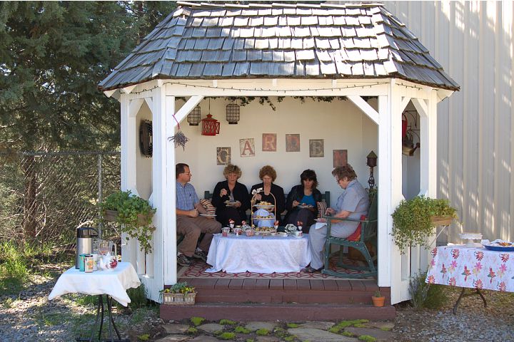 On the second day of summer, we held our (belated) annual tea party for Administrative Professionals day. I tried to organize it on the actual holiday in May, or thereabouts, but discovered that stealing away all seven of our administrative staff at the same time might inadventently make the school crumble in on itself. These wonderful people make it happen every day, and I love that we’re on our fourth year of celebrating them in the garden.