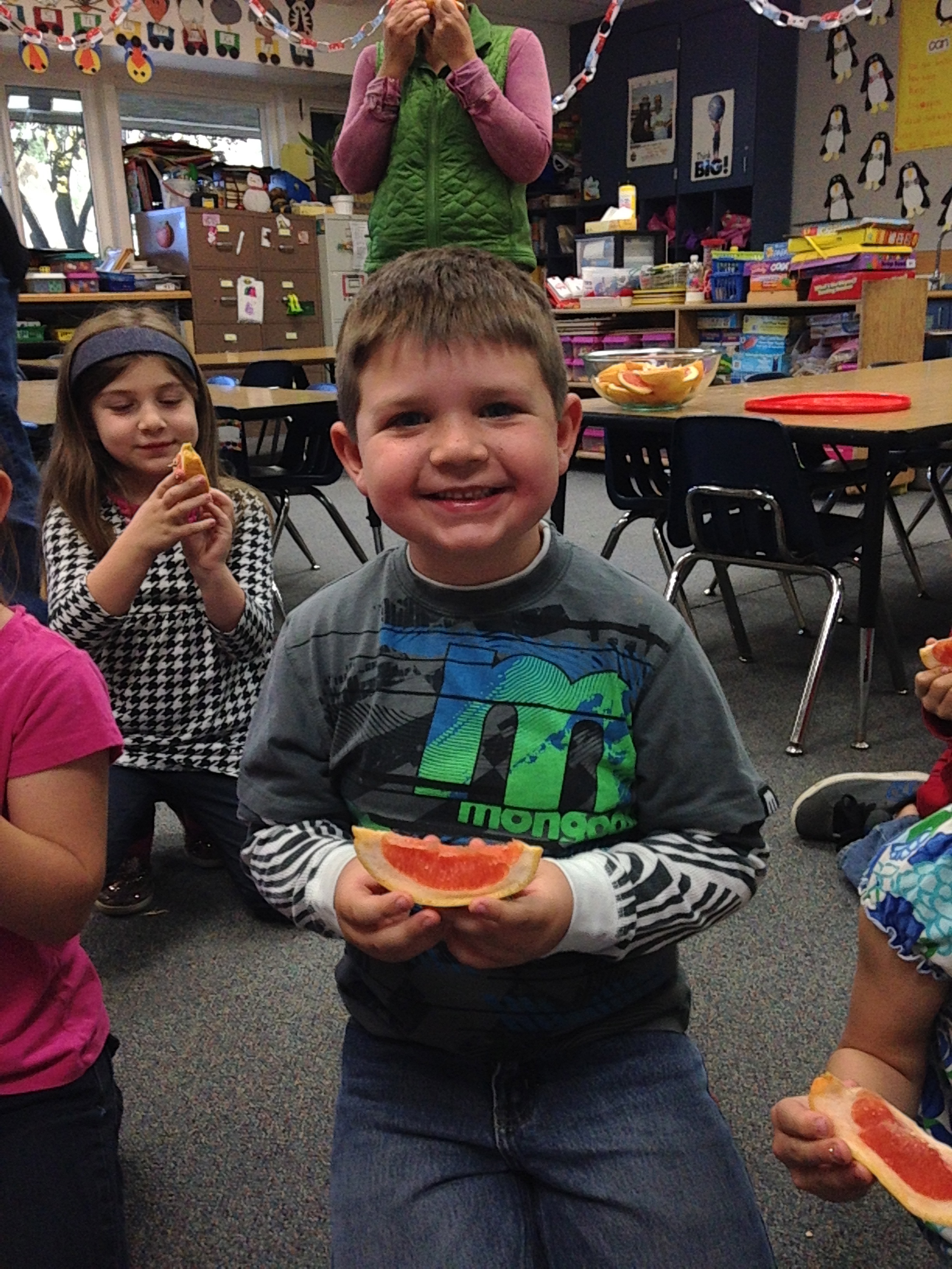 Our Harvest of the Month is citrus.  Citrus doesn’t grow in Julian so we tasted delicious grapefruit from the “neighboring” town of Borrego.
