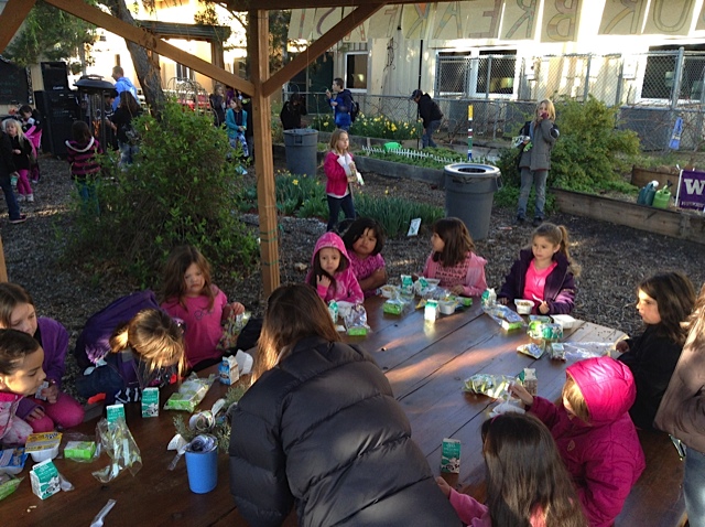 Cooking was another key ingredient of the day. Chef Greg from Healthy Adventures Foundation enlisted students to help make lettuce wraps and flavorful tostadas. Across campus, Chef Jeremy Manley and Carie Quick talked with students about the new school lunch program (catered by Jeremy’s on the Campus) and had the students brainstorm new menu items. To tie it all together, Carmen Macias led a game in classifying edible plant parts, decorating a “My Plate” diagram with healthy choices and ending with a fitness activity. Many parents, Garden Beneficials and other dedicated community members generously gave their day to assisting at each workshop.